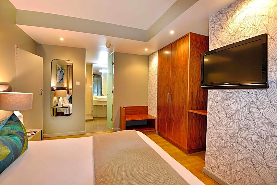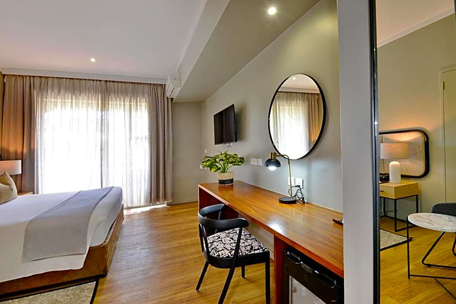 The suite provides air conditioning, a tea and coffee maker and a wardrobe.