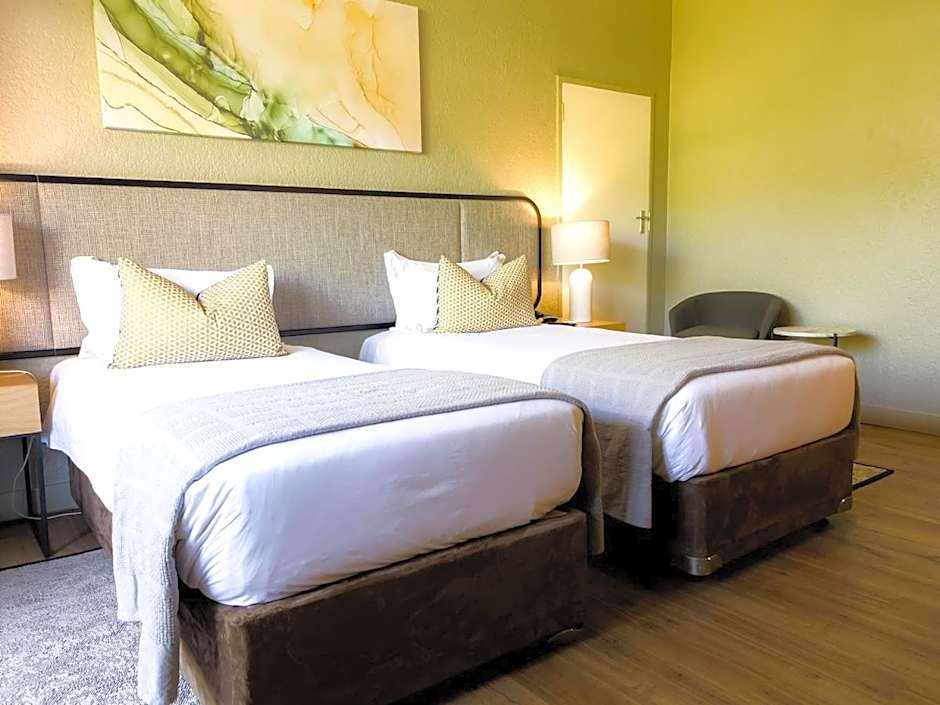 This twin room is air-conditioned and has a tea and coffee maker and a wardrobe. The unit has 2 beds.